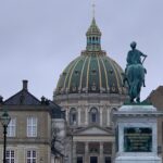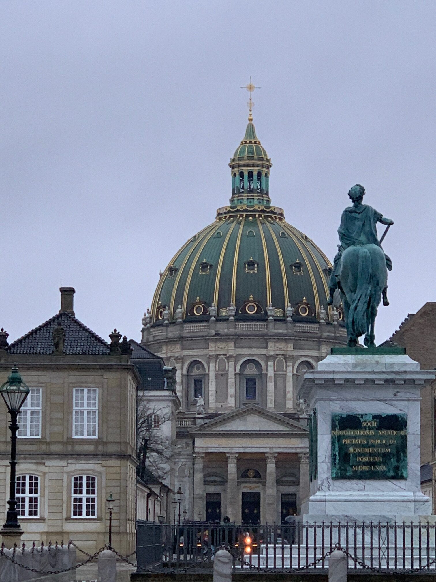 Začela sva z novim kraljevim trgom, ki je kot nek glavni trg v Kopenhagnu. Na njemu tudi stoji mestna hisa. Nedaleč stran je visok krožni stolp podoben tistemu v Pisi, le da je ta naravnost. Do vrha ni vodil ne dvigalo ne stopnice, le spiralna klančina. Verjetno ni treba posebej omeniti da sem obžaloval da sem sel gor celotno pot. Vendar ko sem prišel gor sem ugotovil da je bilo vredno. Nasprotno od včeraj, ko sva gledala razgled na mesto ponoči, sva danes iz druge lokacije gledala na mesto podnevi, in razgled je bil res lep. Le oblaki so ga malo zmanjšali. Nato sva si ogledala se nekaj gradov, palač, opero in pa pristanišče. Vsega je preveč da bi naštel, a moram omeniti da je bilo vse res izjemno. Pri eni od palač je bila pred vhodi povsod straža v stilu tiste svetovno znane v Londonu. Torej rdeče oblek in velika črna kapa. Tu je bilo skoraj enako, le da so bile oblek modre.
