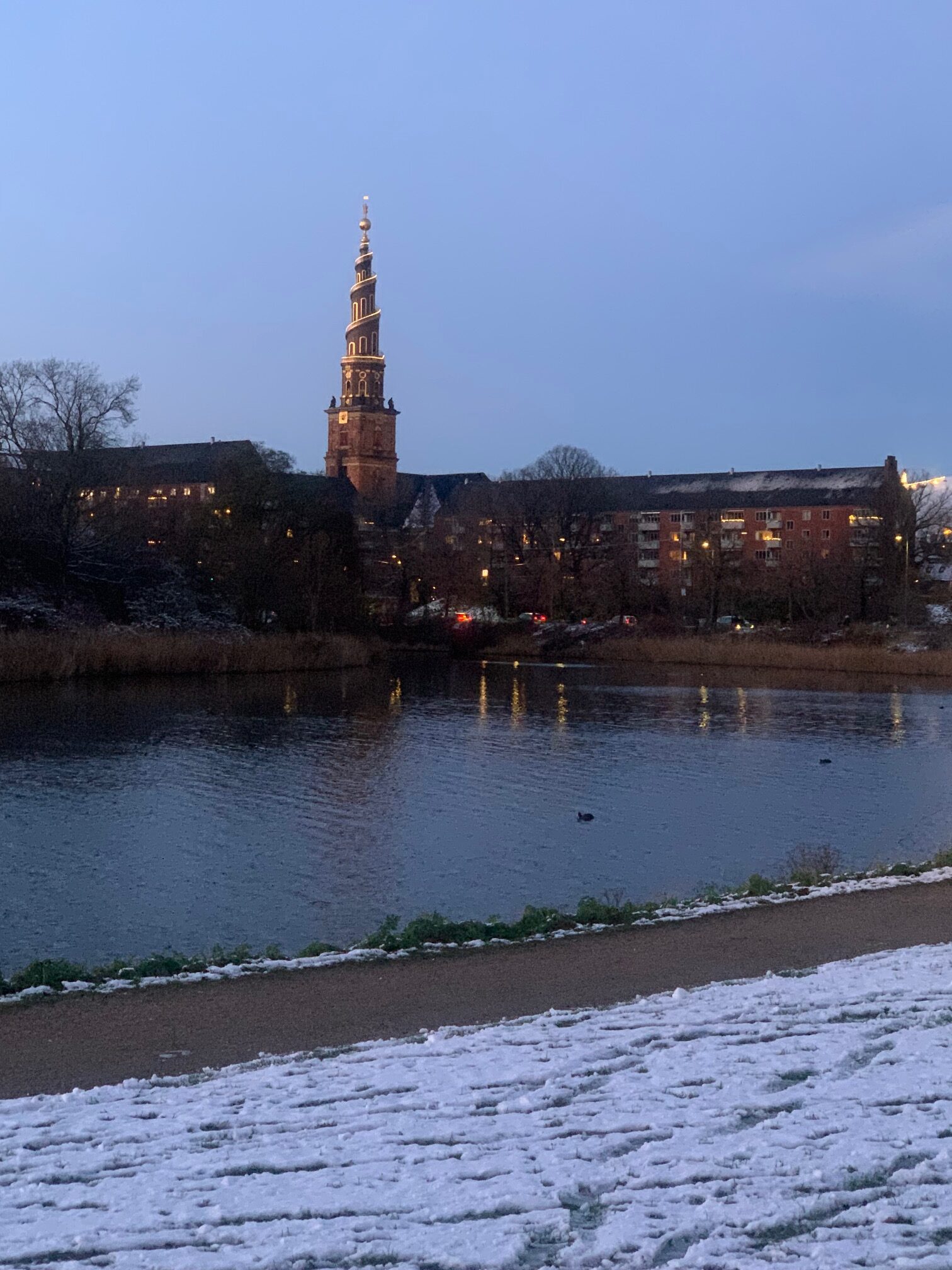 After almost five hours we finally arrived to our destination. After we got off the bus at Copenhagen train station, we had to walk circa 30minutea to our apartment. But we really didn’t mind as it was amazing walking through the big old city center while it was snowing a little. Perfect Christmas atmosphere. After we got to our apartment we quickly unpacked, because we had a plan to go see a few of the tourist attractions. In the night city is even more beautiful as the Christmas decorations here are really huge and nice. You can really see they go all out for Christmas. In that evening we went to see the big modern Royal library. It had around 6 floors and a beauty view point from where u could see all the floors beneath you and the other side of the big library. After that we went to the Christiansburg Palace and tower, which is home to Danish parliament and queens’ office. The view from the old tower was amazing. From up there you could see the whole city center and all the decorations, it was really cool. After that we went to check these huge gardens. Because of the Christmas they turned the gardens into a big Christmas market/amusement park.