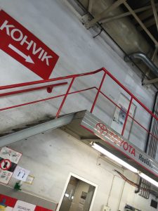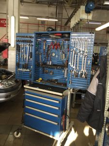 After the breakfast we went on tram number 4 (Tondi) and after that we went across the street to the bus station Kalev, where we took the bus number 18 to the bus station Virve and from there we walked to the Amserv Auto AS-Toyota. At 9.00 we meet with our director Andres Orgla. He then showed us all departments, wardrobe and sauna. He introduced us to our mentors for that day. For the first car we had Toyota Land Cruiser on which we had to do small service. After that we had a 20 minutes brake. There you have an time norm for car and if you finish early you are free. After that we got an RAV4 and went on the lunch. After the lunch we have done three more services and because we finished early we were free at 16.00 otherwise we should work to the 18.00. And that is how our first day on practice has ended.