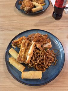 At that moment we both became much more motivated to continue eating. The chicken there was incredibly good. To be honest, I’m still not completely sure if it was actually chicken, but it tasted amazing. After about three full plates each, we were completely full. With happy stomachs we slowly walked back to the apartment and went to sleep.