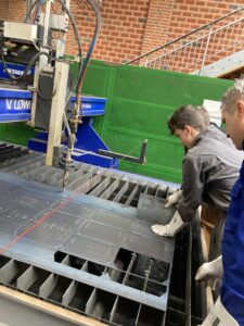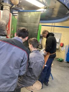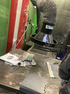 We were putting into groups of four, and each person received their own task. The first group cut the pieces on the laser, the second group dealt with cutting, and the third group with bending the pieces. We assembled the sides together and welded them, then ground the welds. We continued with the production of the grill grates. We drilled the pieces and connected them together. Finally, we attached the stand under the grill.