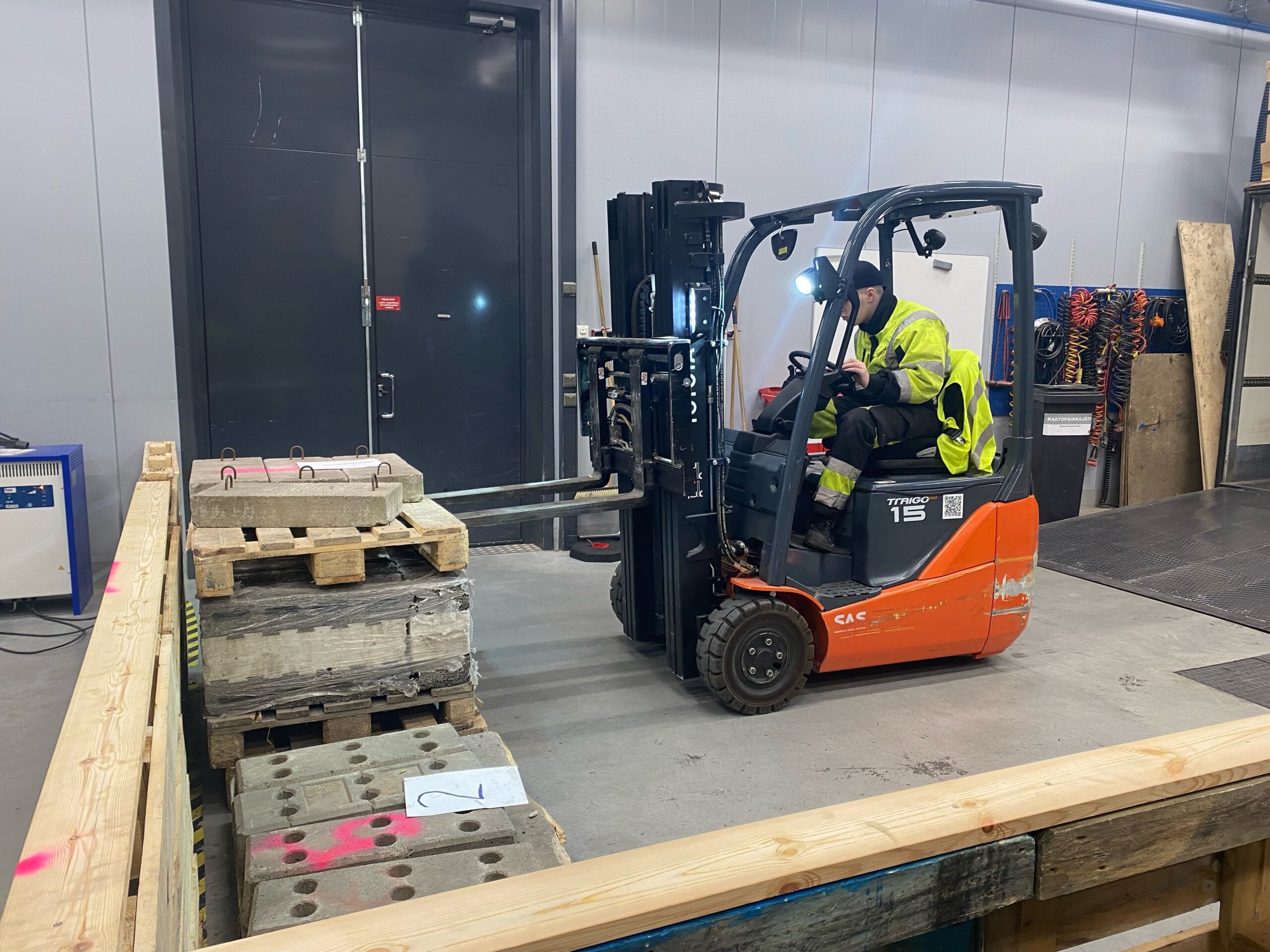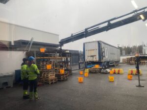 At the second station you had to stack boxes on a pallet so that nothing would move when driving with the forklift.