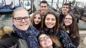 Danes zjutraj smo se z Michelino družino odpravili v Benetke. Na pot smo se odpravili ob 7.30. Z nami so šli se Chiarina družina, Lucova družina ter nemka Leticia in španec Jordi. Peljali smo se dve uri in pol seveda sve z Michelo vse prespali. Ko smo prišli smo parkirali in se odpravili na železnisko postajo, kjer smo kupili vozovnice do centra Benetk. Peljali smo se 10 minut z vlakom v center Benetk. Hodili smo po Benetkah in občudovali vso to lepoto. Zvečer pa smo odšli še na pico. 🙂