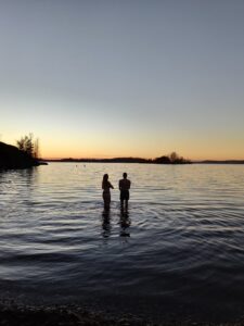 They got out and quickly changed back in to warm chlothes. We went to view point where we then watched the sunset. We got back to the station and took a bus home. While we were walking home we saw green lights on the sky. We then checked on app, if there was any option to see aurora borealis, but there was not a chance. Maybe in the next few days.
