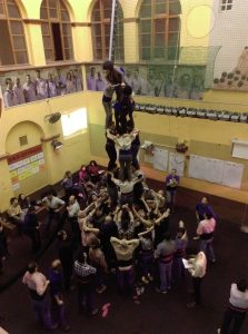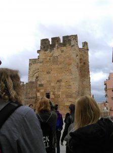 Next, we went on a tour of Tarragona and were told a lot of historical facts about Tarragona during the Roman times. We visited the Amphitheatre and the Roman Circus. Just when we finished with the tour it started raining. Most of us hadn’t brought our umbrellas but it didn’t rain that much so we got home mostly dry. After eating lunch and resting for a bit we all gathered again at a bowling alley. This time however, we didn’t forget to bring our umbrellas. We had a lot of fun bowling and then went to have dinner. When we finishe eating, the rain was pouring! We went to our next destination by car but just having to walk for 5 minutes after the ride got us completely drenched. It was raining cats and dogs and the umbrellas weren’t helping. We went to see people practicing the human towers and it was very interesting. It looked really dangerous climbing up levels of people and the youngest girl was about 5 years old. I can’t imagine myself ever doing that. At about 11 or 12 pm we had to walk back home in the rain with out pathetic umbrellas and honest to god, I couldn’t feel my feet and hands because I was completely wet and it was really cold. You’d think the weather in Spain is hot, well think again. Finnaly, we arrived at home and I took a long and warm shower to warm myself up. All of my clothes were so wet I was just happy to get them off and that my phone was not damaged. I went to bed quickly after that and fell asleep with hope for the next day to be rainless.