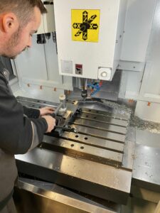 On Monday and Tuesday we had other experiences. On Wednesday we started work. Girls went to work at logistics and we went to machining workshop. Me and Domen went straight to CNC milling machine where we met other student who in studying there. The other two boys went working on classic lathes because they don’t like CNC and computers. The guy that me and Domen were learning with was very nice. He is around 35 years old and was a bartender but he decided to change profession and started metalworking. When we came he was already programing a part. We quickly caught up and started programing together. At the end of the week we almost finished the part so we will continiue next week