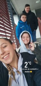 Yesterday Timotej and Jaka took us to the sauna. We took a trolley to the centre, there we switched to the bus. In 40minutes we arrived to the Rauhaniemen. We bought tickets which cost 8€/person. We think that this is not expensive at all. You can stay there all day. They have changing rooms where you leave your clothes and you can also borrow a locker where you can leave your personal belongings. At the place that we have been they have 2 saunas.