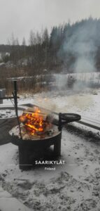 ogledali avto-muzej, kjer pa je Timotej kupil maketo Ford mustanga 1967. Fantje kot fantje. Da pa sva tudi midve z Ano prišli na svoj račun smo se povzpeli po 66 stopnicah do vrha razglednega stolpa ob muzeju. Zaradi prekrasnega vremena, razgleda ni bilo. Naredili smo še skupinsko sliko in se odpravili na piknik. Ob lesenem nadstrešku, je narejeno kurišče. Zakurili smo ogenj in spekli klobase. Še vedno se nismo privadili, da Finci zraven, večinoma ne jejo kruha. Pogovarjali pa smo se o tem, kako se nam je zdelo in kaj si bomo najbolj zapomnili. Ko smo napolnili svoje želodčke, smo pogasili ogenj in se odpravili nazaj proti Tamperam…..