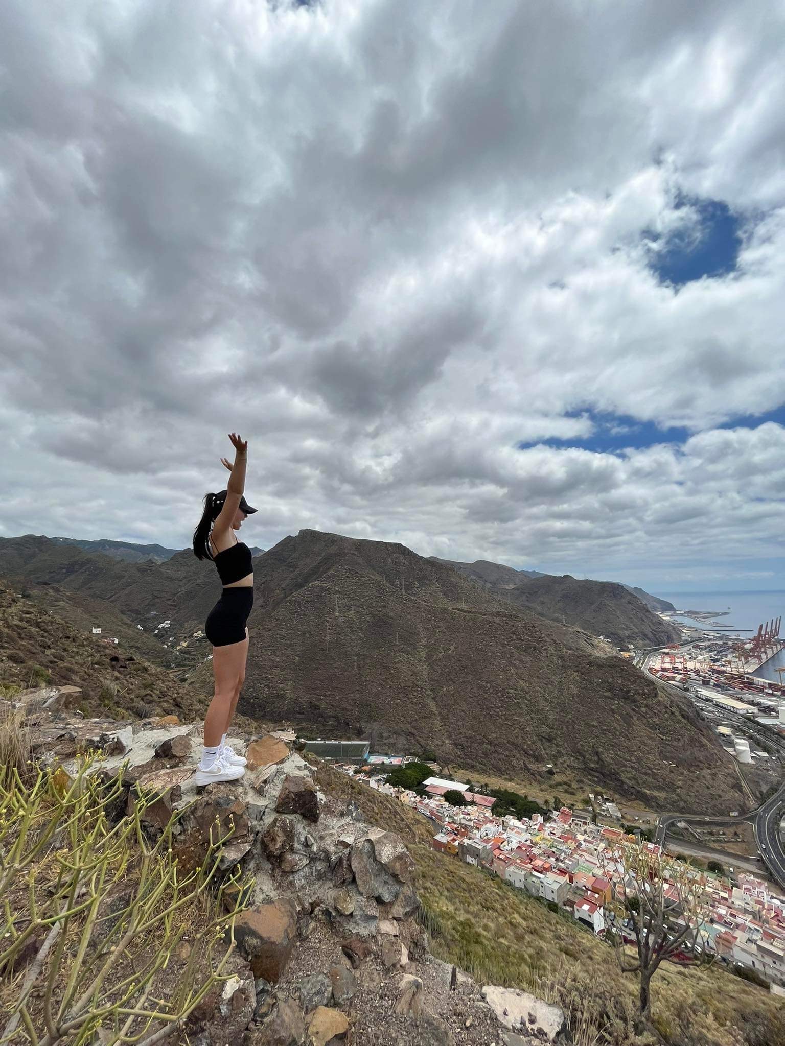 Ko sva prispele na vrh je bil pogled ravno tak kod sva želeli videli sva mesto kod, da sva na oblakih. Morje je šlo v neznano, pogled je bil res prečudovit. Mesto sva gledale kar 10 minut, saj se nisva morali nagledati. Spustili sva tudi kakšno solzo saj je bila to zadnja sobota katero sva preživeli na Tenerifih. Pot nazaj sva si kar zapomnili zato nama ni vzelo veliko časa, da sva prišli do doma.