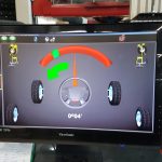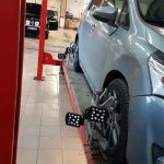 Ko je vozilo prišlo v delavnico ga je mentor zapeljal na optiko jaz pa sem mu kazal če je vozilo naravnost ali ne. Nato sem v vse pnevmatike vnesel enako količino zraka, tako da je bil tlak v vseh pnevmatikah enak (2.4Bar).