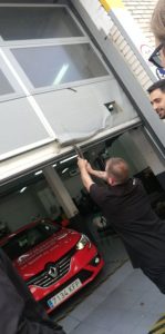 Yesterday I and mechanic which I work with replaced front springs on new Renault Megane. When we were replacing them we needed to remove brake calipers, brake pads and brake discs. We also needed to remove front axles and suspension arms. Then we could replace springs. After replacement we put all back together. When we finished he said to me to sit in car and pump brake pedal to make it hard. He said to me with his broken english that we always need to pump it before we go out of garage. Next day we had to replace them on the similar car. We removed everything needed. Then we replaced springs. After replacement we put all things back together. Then we lowered elevator and sit in a car. Mentor started car and start moving forward towards to the portcullis. There is a small ramp in garage. When we came to it, mentor stepped on brake pedal. But we have not stopped because he forgot to pump brake pedal before. We had crashed in portcullis. Then there was silence in the car for few seconds, and then we both burst in laughter. There was not damage on the car, but portcullis was a little damaged. We fixed them  and went on test drive. Teaching of this story is: “Always pump brake Pedal”.