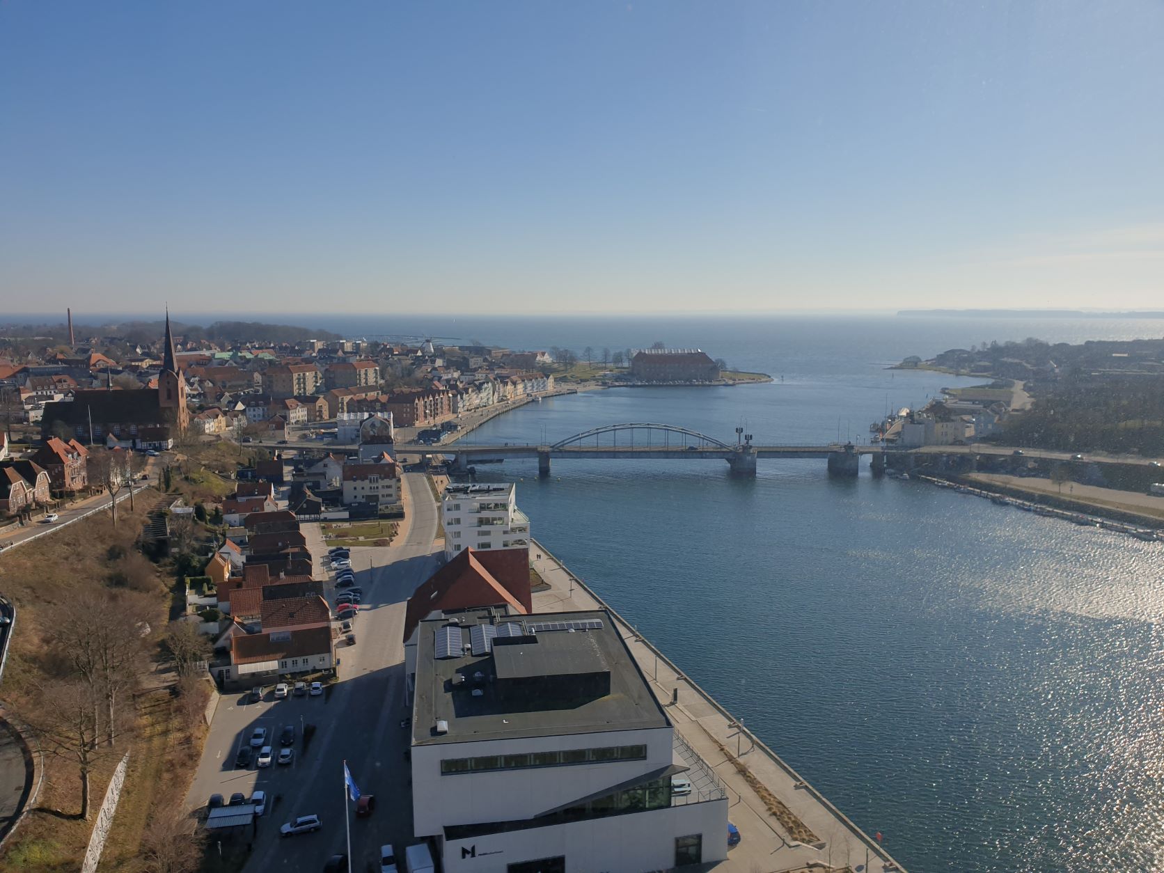 V nedeljo smo se s sošolci odpravili na razgledno točko, katera je v hotelu imenovanem Alsik. Na poti tja smo odšli mimo klasičnih Danskih hiš, ki so nizke in večinoma narejene iz opek, med sabo pa so si te zelo podobne. Pot smo nadaljevali skozi center, katero je za tako mestno zelo veliko. Zato smo tam videli veliko različnih trgovin kot pa tudi nekaj domačinov, ki prodajajo razne izdelke. Svojo pot smo nadaljevali ob obali, ki je bila zaradi lepega vremena zelo polna obiskovalcev. Tam smo v morju videli tudi nekaj rib, meduz in školjk. Po nekaj minutah smo nato prispeli pred hotel, v katerem je razgledna točka. Tam smo lahko videli tudi višino hotela, katera znaša 70,54 metra zato je to najvišja infrastruktura v Sondeborgu. Videli pa smo tudi višino razgledne točke, ki je na višini 57 metra. Na razgledno točko nas je odpeljalo dvigalo, nato pa smo tam imeli 30 minut časa, da se razgledamo naokoli in naredimo nekaj fotografij. Po končanem ogledu smo se ustavili še v bližnji restavraciji, v kateri smo malo poklepetali. Nato pa smo odšli na večerjo v dijaški dom, v katerem ostajamo. Dan smo zaključili z igranjem namiznega nogometa, biljarda in družabnih iger.