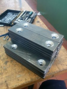 On Wednesday I got some more parts to make… But this time I had to make 25 of the same ones and had a deadline till Friday. Their dimensions had to be 180 mm long, 40 mm wide and 10 mm thick. So I took some raw stock which was already 40 mm wide and 10 mm thick and cut it so that every piece was 180 mm long. I also got a rough plan of how the holes had to be positioned…