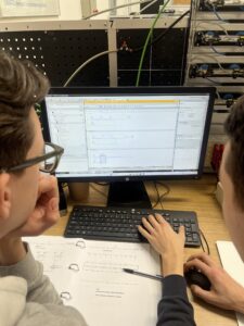 We had to program the PLC so that pneumatic cylinders would move in a sequence based on different tasks. There were ten challenges in total, each one getting harder as we went. Vito and I completed them all and managed to solve every single one.