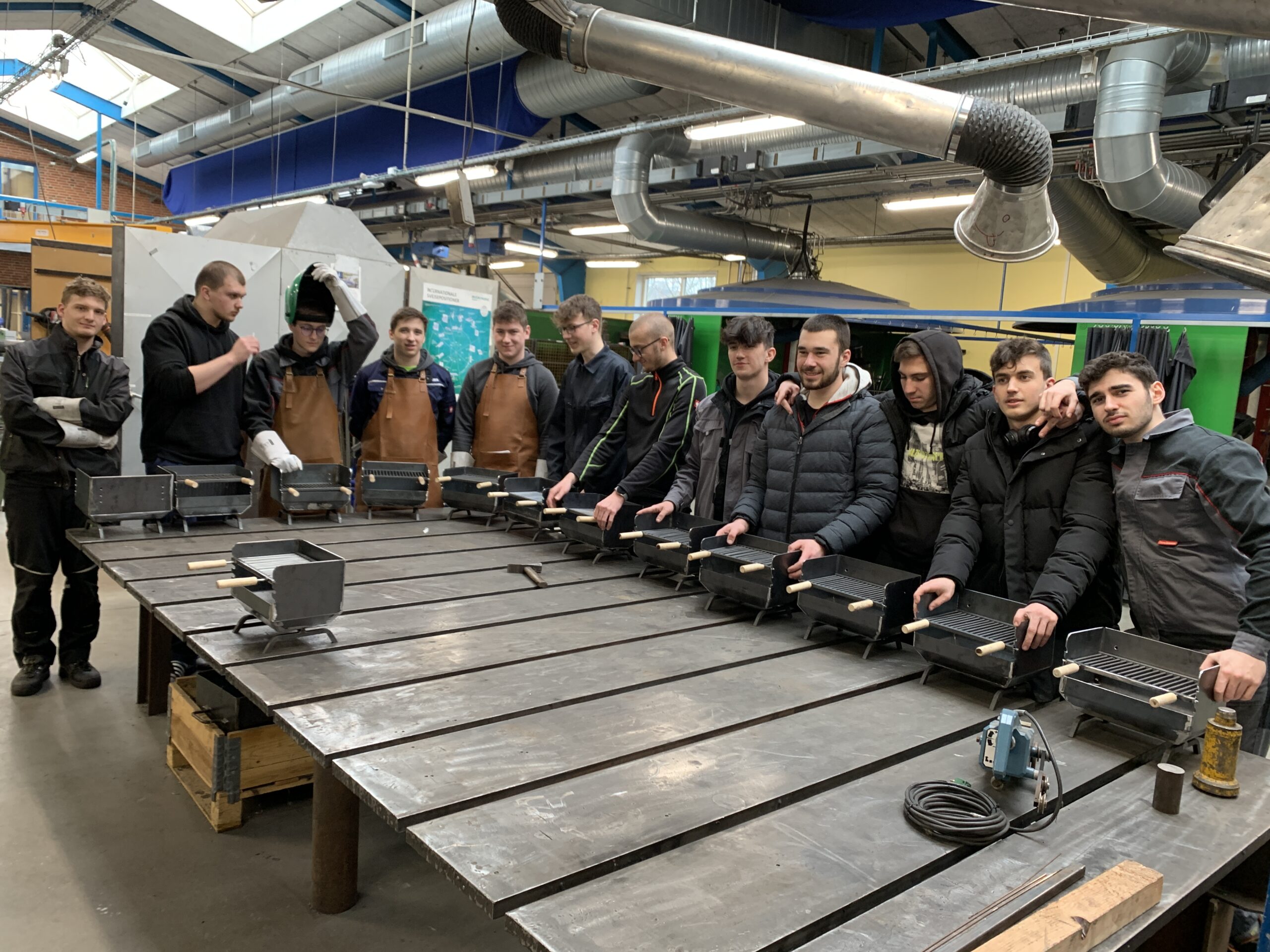 so to show what we learned over the past two weeks in Tonder, we 3d modeled all the parts needed before taking the program down to the plasma cutter. While the cutter was cutting the rest of us prepared the material for the gills legs and the bars needed for the hot plate once the pieces were cut and the legs bent we began welding our girls. once the school day was over, we had mostly all finished our grills, so the following day we began working on fire starters. Which we finished quite quickly. once all the grilling equipment was finished, we began clinging up the workshop polishing the tables, managing cables, and sweeping.