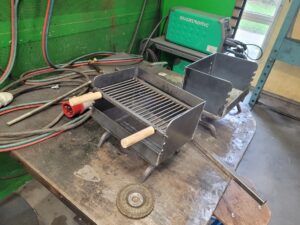 Da demonstriramo kaj smo se naučili v zadnjih 2 tednih v Tonderju nam je profesor predal tehnično dokumentacijo za žar s malo obrazložitve o uporabi 3d modulatorja smo pričeli s delom. Ko smo kose zmodelirali smo jih pretvorili v kodo ki jo plazma rezalnik razume s tem smo pričeli s delom medtem ko je stroj rezal smo ročno narezali material za noge ter rešetko žara ko so bili surovci pripravljani smo pričeli s delom. Žare smo kar hitro z varili ob koncu dneva nam je bilo razloženo da bomo naredili tudi grelec oglje s zrisanim načrtom smo pričeli s delom delali smo v skupinah po štiri.