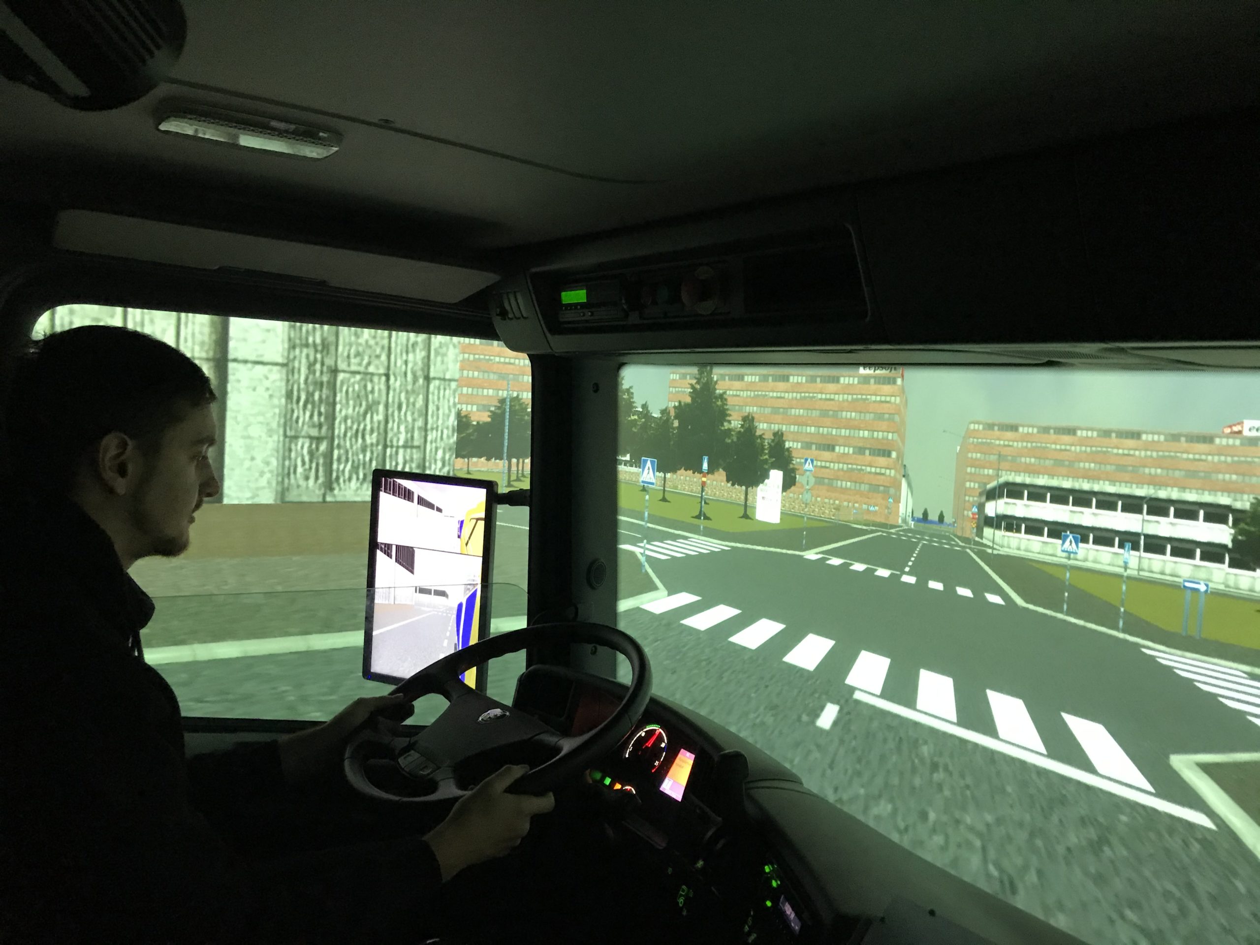 The teacher who was with us in that room is very friendly, he really want to teach us how to drive truck. When we failed the mission he always says let’s do it again, try to explain us how we could do it better, talk to us after we finish what we can change to become better drivers.