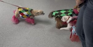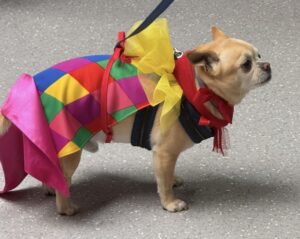 The theme was harlequin clowns, who originally come from Italy. Our professor helped us make the costumes and guided us through the process. The Spanish professors tried to help us as well. The only problem was the language barrier. First, we had to pick a dog. We were given the dog’s name, breed and a size. I chose a chihuahua, and the size was XS. We had very little time, only a day and a half to prepare everything. We started by making sketches of the costumes. After that, we hurried to create the patterns. Then we began sewing and putting all the pieces together. It was stressful but also very exciting. When we finished the costumes, the dogs arrived. One of them was barking nonstop. We felt sad and happy at the same time. The dogs were stressed, because of so many people and other dogs. Soon it was time for them to walk down the runway. The funniest things was that I got the dog who was baking nonstop. Her name was Bella and she was a real sassy queen. The students laughed the most at my chihuahua. The owner even put paw accessories around the Bella’s neck. That made the whole situation even funnier. The owners took the dogs to the start of the runway. Bella refused to walk in straight line. Instead, she kept turning around and barking loudly.