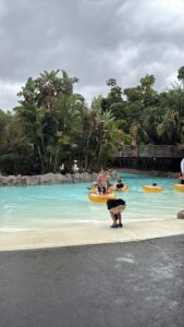 The staff there gave us a map, which guided us through the park. Our first stop was the Mai Thai river, which is kinda popular and the social media calls it “lazy river”. We took our rafts and jumped in. It was pretty slow, so we gave a little push with our feet sometimes.