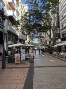 However, moving to another country was still a big challenge. I am a sensitive person, so it took me about a week to get used to everything. At first, I struggled with speaking English all the time and felt a bit tired and out of rhythm, but slowly life became easier. Living in Tenerife is very different from life from Slovenia. The weather is amazing almost every day, with bright sun and warm temperatures. The beaches are beautiful and I love walking around along the coast and hearing the sound of the sea. People here seem more relaxed and happy. Life moves slower in a good way and it feels like, everyone takes time to enjoy little things. I enjoy seeing local chat outside, laugh and spent time together. The streets are lively, full of markets and caffes. Even driving is different. People here are more relaxed, although they can still drive fast in some places.