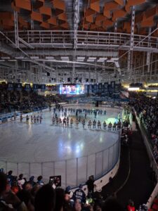 Ker nismo poznali pravil hokeja smo se malo lovili, kaj je prekršek in kaj ni. Tekma potoke v treh delih, vsak del je 20 minut. Premor med njimi je 18 minut, in čas se je kar pogosto ustavljal zaradi manjših prekrškov, ali pa je pak šel ven iz igrišča. Tako da je cela tekma trajala 3 ure. Morali smo se tudi zbrati kasno uro in pol prej da dobimo dobra mesta. Gledali smo tudi kako so navijači hodili in navijali za ekipo, po centru in do stadiona.