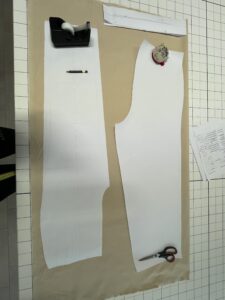 After we cut the patterns we sew them together and tried them on. When we tried them Zoja helped and pined the waist where should it be and adjust the placement.