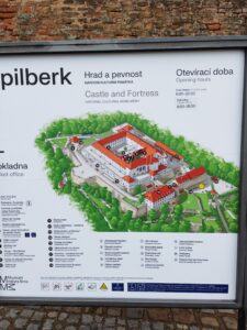 Naša pot do gradu se je začela iz Bunkerja 10 Z, ki je zgrajen pod njim. Hodili smo približno 10 minut do vhoda na grad, nato pa še 15 minut, da smo naredili krog in slikali Brno z višje razgledne točke.