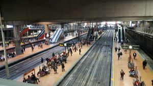 Pot od hostla do podjetja traja približno eno uro. Najina pot se začne pri hostlu, kjer smo nastanjeni. Pot nadaljujeva peš po stranski ulici do metro postaje Anton Martin, kjer se peljeva dve postaji s podzmno železnico. Iztopiva na glavni postaji Atoche Renfe. Odpraviva se na vlak,ki vozi vsakih nekaj minut, res pa je potrebno malo prehoditi, ker ni tako majhna postaja. Ko sva na vlaku se voziva približno 23 minut, predno pridemo do postaje, kjer iztopiva. Vožnja je raznolika. Ko iztopiva imava nato še slabih 5 minut hoje do podjetja, kjer delava. Pot z vlakom naju vodi čez del mesta Madrid, ki pa je lepo urejen. Na vlakih in podzemnih železnicah nimajo vlakovnih preglednikov, za karte, ampak pred vstopom na vlak ali metro imajo zapore, na kater je potrebno prisloniti karto. Za izhod je pa največkrat zapornica magnetna in jo samo odrineš in se odpre.