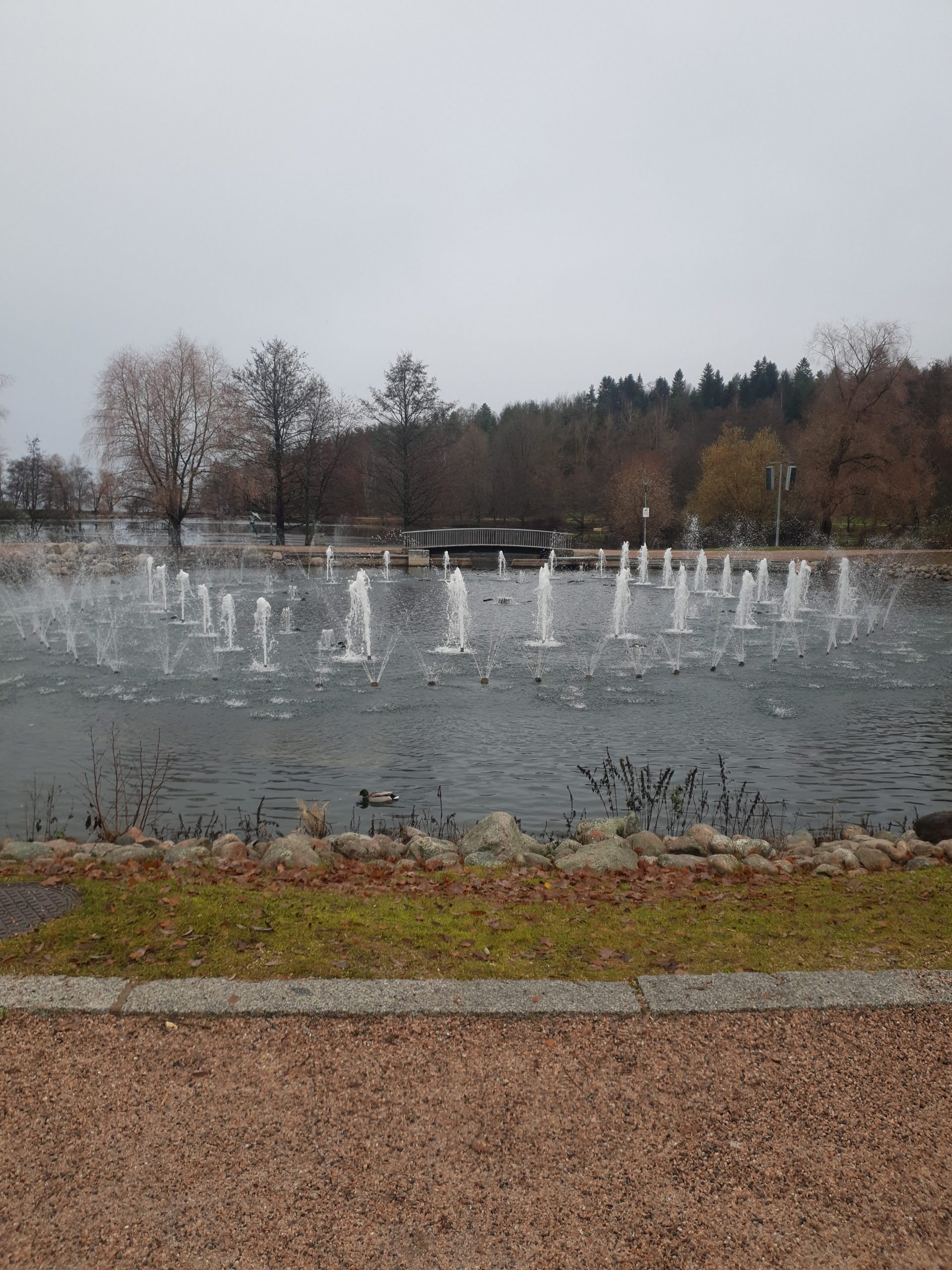 There are many places in Lahti where you can spend your free time. I visited Lake Vesijärvi, a singing fountain, a football stadium and a ski jumping area. Vesijärvi is a 111 square kilometer lake. Enonsaari Island is also on the lake. We can do different activities at the lake. The singing fountain is located near the lake. Every day at 7 pm music is played from the fountain and the water from the fountain is colored.