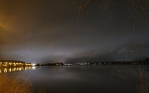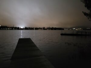 Vedela sem, da bom najbrž hodila še kar nekaj časa, zato sem zavila v smeri proti domu. Ves čas poti nisem srečala žive duše, zato sem lahko uživala v času zase. Kmalu sem prispela do potke ob jezeru, kjer se je moje raziskovanje začelo, in se pred prihodom domov še malo ustavila, da bi uživala v nočnem pogledu na razsvetljeno skakalnico Mattija Nykänena na drugi strani jezera.