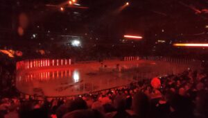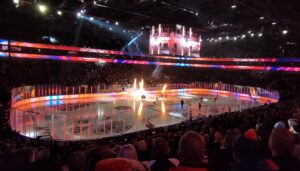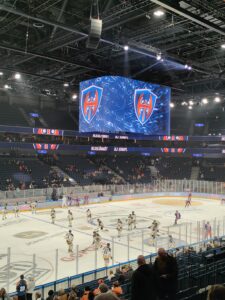 The hockey match was scheduled on Thursday 17th of november at 18.30. Me, my friends and our professor agreed to meet in the front of the Nokia arena one hour before the match started, so we could avoid crowds. We went inside, showed our cards and went into the hall. We were waiting for the match to start, and there was different kinds of music and a big light show while we were waiting. Then the countdown started and we got prepared for the match between Tappara and Kärpät. We cheered for Tappara, because they were last year’s champions, and they were the home team. After that the players came on to the field, fireworks started and there was a fire show. Overall the fans remained calm and barely cheered . The only ones that were constantly cheering were the Tappara fan club.