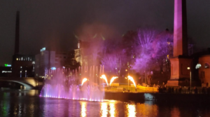 On Thursday we went out in the city center of Tampere. We were driving with a trolley, when Aneja noticed purple lights in the middle of the lake. We got off the trolley at the next stop, went back to lake and checked out the lights. I noticed that there were some spotlights behind the little fountains, but they were turned off. The other side of the lake was crowded with people, so I assumed that maybe people are waiting for the show, that will happen at 7.00pm. Time was 6.54pm, so we had time to go around the lake and wait for the show to start. Suddenly music started playing and water show started to go higher and higher. The colors were changing and water was rising and falling. At the end there was fire spewing in the background. I recorded the whole show with my phone, but there were two older gentleman’s, that were recording all of it with a camera. Aneja approached them and kindly asked if they can forward the video of light show to her email. They were so kind and said that they will try their best to send us the video. When the show ended we went to the bar nearby and ordered hot chocolates. We were there for about half an hour and we heard the music again, so we assumed that this event is happening every hour. The show was very beautiful and definitely an experience that I will never forget.