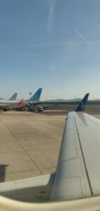 V nedeljo ob 12.00 smo se dobili na letališču Jožeta Pučnika, oddali prtljago in prevzeli letalske karte. Leteli smo z Brnika v Varšavo. Na letališču smo se okrepčali in poizkusili nekaj poljskih čokolad ter se polni navdušenja odpravili na letalo proti Helsinkom, kjer se je zanimiv del dneva šele začel.