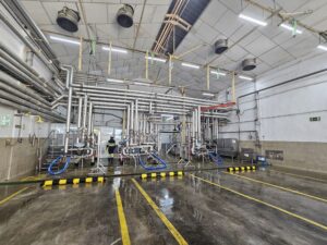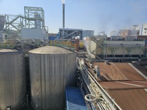 Skupaj smo si ogledali podjetje in videli celoten delovni proces – od transporta surove koruze do končnih proizvodov. V vsaki stavbi opaziš ogromno strojev, ventilov, elektromotorjev in cevi. Cevi je največ in so speljane v vse smeri (gor, dol, levo, desno), zato mi je bilo takoj jasno, zakaj je čelada obvezna. Res si moral paziti, da se nisi udaril v glavo.