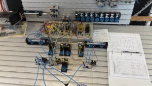 Prvi teden smo delali s pnevmatiko in elektropnevmatiko. Glede teorije sem že veliko vedel iz pouka v Sloveniji, vendar mi je bilo zelo zanimivo to prenesti v prakso. Pouk traja od 8:10 do 15:10, z dvema 20-minutnima odmoroma in 30-minutno malico. Cel teden pouka je hitro minil in že komaj čakam na novega.