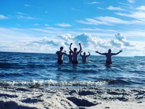 Odšli smo se tudi kopati v morje katero je imelo 3°C. Nekateri so sicer malce zboleli, ampak smo vsi bili uredu sicer jaz osebno nism čutil nog, ko smo šli v vodo ampak je bilo zabavno.