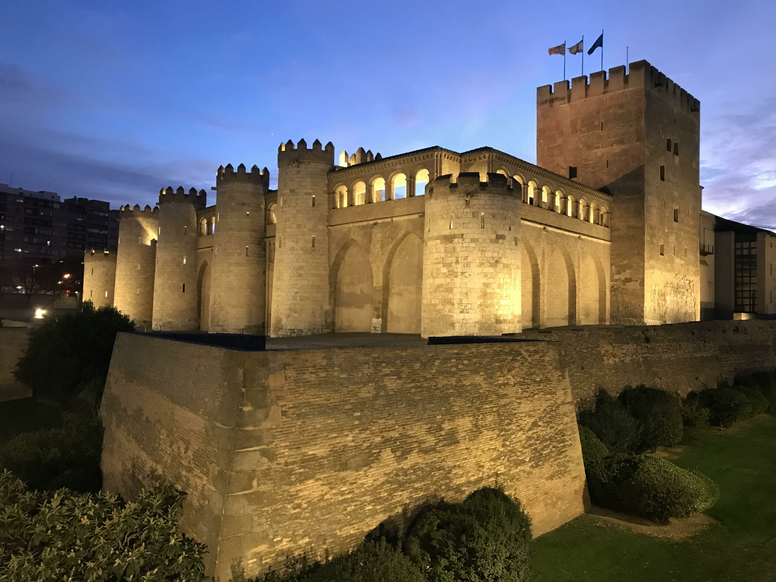 Zaragozza has also a castle. It is called Aljaferia palace and in Arabic it means a Palace of joy. With geometrical shapes architecture is based on Islamic culture. King of the Taifa Saraqusta, ordered the construction of the palace in the second half of the 11th century. Today is inside located parliament of Aragon. It is very secured with guards and it was pretty scary.