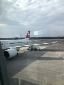 Odložili smo prtljago in počakali na odhod našega letala. Ni nam bilo dolgčas saj smo igrali namizni nogomet. Tako smo dočakali naš let in adijo Slovenija. Leteli smo približno slabo uro in pristali v lepi, pa tudi dragi Švici. Tu, natančneje v mestu Zürichu  smo na naslednji let čakali približno dobro uro. Tudi tu nam ni bil dolgčas, saj smo si ogledali letališče.