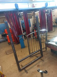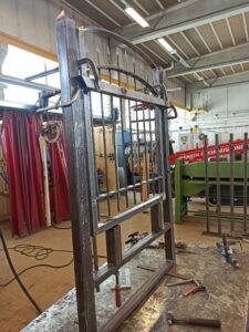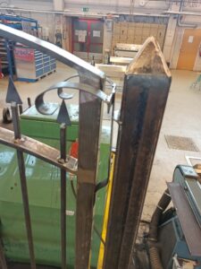 V ponedeljek drugega tedna nam je pa profesor dal zaposlitev za cel teden. Dal nam je načrt za izdelavo železnih vrat. Profesor je to predvidel za delo do petka, mi smo pa v četrtek zjutraj samo že na fino popravili lepotne napake in vrata so bila na red za prodajo. Delo smo si na začetku malo porazdelili, na koncu ko so bila pa vrata in okvir že skoraj dokončana pa smo sodelovali vsi, ker 2 bi bolj težko delala sama, druge dva bi pa med trem gledala v zrak.