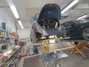 We worked on repairing an old Beetle. The car had some rust and small dents. First, we cleaned the areas with rust. Then we used tools to fix the dents. It was careful and slow work. We made sure the surface was smooth. We also treated the rust so it would not spread. After the repair, the car looked much better. Then we prepared the Beetle for transport. We moved it carefully to the body shop. The body shop will completely restore the car. They will repaint it in a new color. They will also protect it from future rust. The paint will make the car shiny again. We were happy to see the old car being fixed. It was fun to work on the Beetle. I learned a lot about car repair and rust protection.