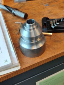 This week was the most interesting because we fina lly started learning about CNC machines. On Monday, we got to know the machine. We were given instructions for use and had to set up the CNC lathe by ourselves, without the presence of the professor, in such a way that it was only necessary to load the program and make the product, which had to be within the tolerance limits. We had quite a few problems, as the lathe was from another manufacturer and had a different work process, but we successfully resolved them with the professor’s help. After choosing the right lathe head, choosing the correct diameter and material of the stock, and calibrating all the tools we needed, it was time to test the program. We made the program ourselves, so we didn’t initially believe in our abilities and took our time for the first piece. We successfully made the first piece without any problems; it just wasn’t within the proper tolerances. Because we took too much time on the first piece, we ran out of time on the second and third pieces. We managed to make it, but that’s why there was a problem with the tolerances.
