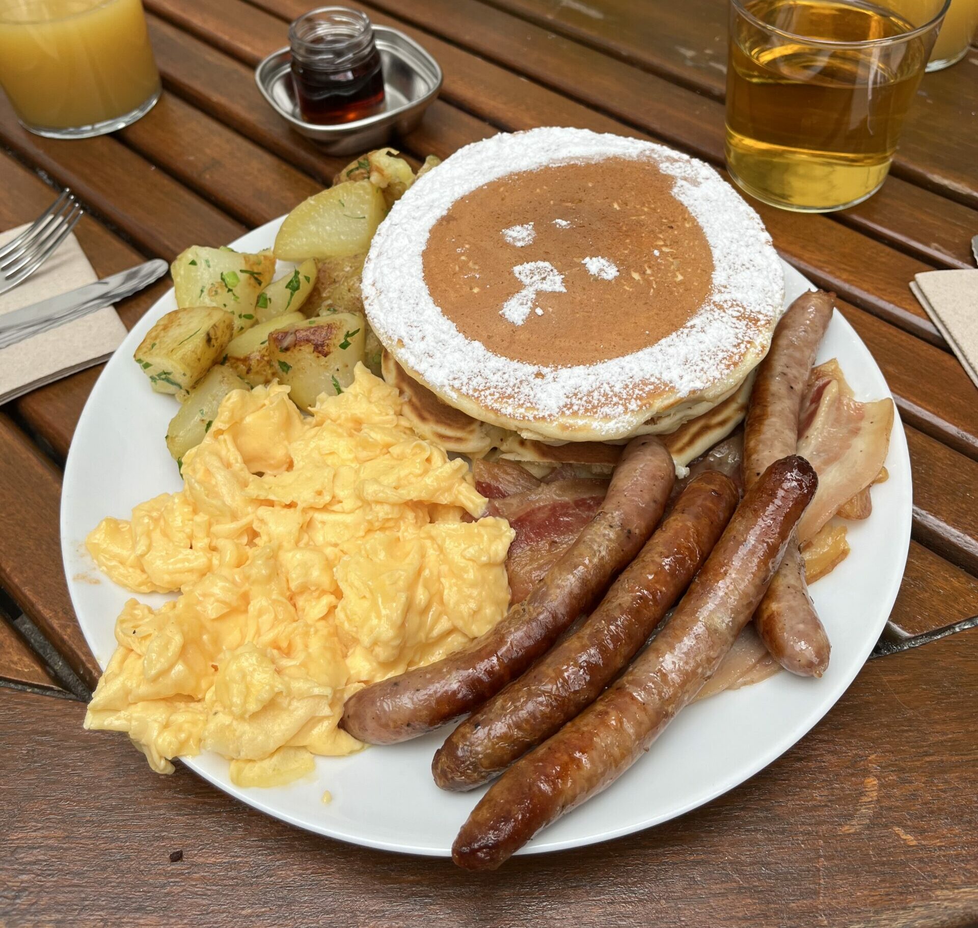 Again Im going to be talking about the weekend which I was in Barcelona and in this blog I am going to tell you about a giant and delicious breakfast I had. The breakfast place that we went to is called Billy Brunch and the reason that we decided that we would go to this place was mainly because of the amazing 4 or 5 star reviews that it has. You can see which breakfast I had in the main picture above thist text but I am going to talk about my breakfast a little bit latter firstly I am going to write about my friends breakfasts. Three of my friend had the traditional english breakfast which consisted of bacon, eggs, tomatoes, mushrooms, bread and baked beans this meal was about 14€ which was a little bit expensive. One of my friends decided that he is going to have chips with guacamole and salsa that meal was the cheapest out of the three but I dont remember exactly how much it costed. I had the biggest breakfast out off al three and it consisted of 4 scrambled eggs, bacon, sausages, potatoes and american pancakes with mapple syrup this was the most expensive meal and it was 18€ which I found very expensive but it was definetly worth it everything was very tasty and we had more than enough food. When we asked for the bill they brought it to us in and egg container with their logo which we found quite interesting. If you are visiting Barcelona I definetly reccomend going to Billy Brunch as your breakfast place, it is a little more on the expensive site but you cant expect a low price at such a good place. For everyone that is going to order the same meal as me I would reccomend first eating the salty foods such as eggs and finishing with the pancakes because they are so fluffy and get stuffed realy fast.