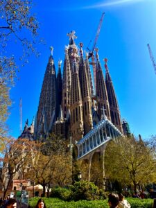 Our first stop was the Basílica de la Sagrada Família. It is a massive church that they started building in 1882, and it is still under construction today. Even though it’s not finished, it is one of the most famous landmarks in the world. The crowds were huge! To go inside, you need a ticket that costs around 30€, but everything was fully booked weeks in advance. That is why we could only admire the incredible architecture from the outside.