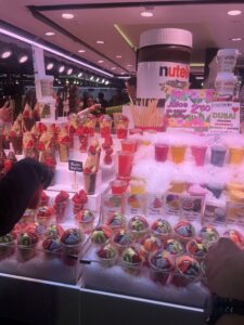 While exploring, we saw cultural dances and visited local food markets. This is where we learned more about the local pride; many people in Barcelona want Catalonia to be its own country. They even have their own language, Catalan. While it sounds a bit like Spanish or French, it is a distinct language with its own rules, and locals are very proud to use it in their daily lives.