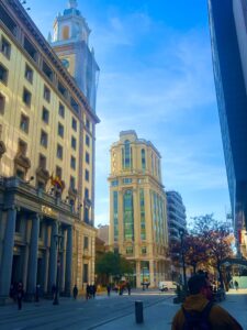 My first impression of Spain was positive because the weather was sunny and not too windy. When we arrived in Madrid, it was already nighttime, and we were trying to catch a bus to Zaragoza, but we missed it. At that point, we were all tired because we had been traveling for over 12 hours, so we stayed at a hotel for the night and took a bus in the morning.
