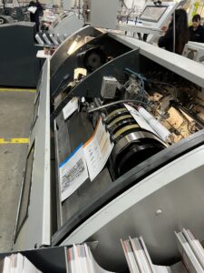 One of the machines we worked on had a faulty contactor. It wasn’t sending the correct signal to the motor, so the paper wouldn’t move along the line. We also spent two hours investigating an “automatic track” issue where the paper would randomly stop mid-action. Even though we waited for it to fail, the machine behaved perfectly while we were watching! In the end, we cleaned the low-paper sensors, and that seemed to do the trick for now.