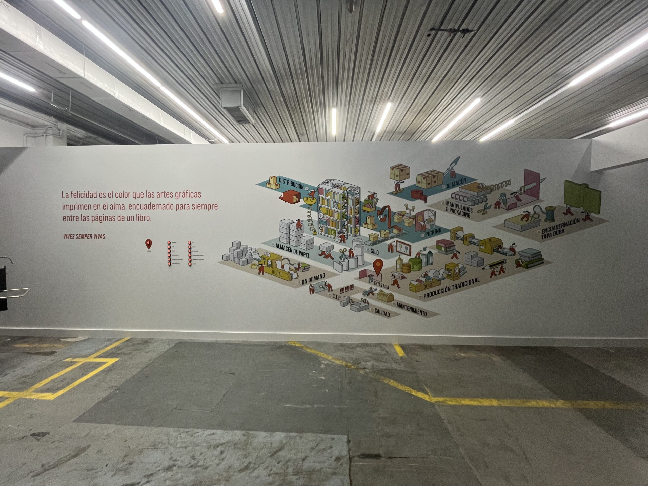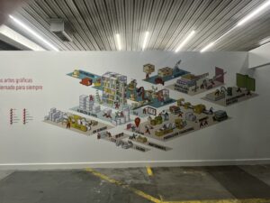 On our first day at Edelvives, we started with safety training and a tour of the facility. Edelvives is a large printing company that produces school books, novels, and more. The process is fascinating: they print on large sheets of paper, then either glue, stitch, or use plastic spirals to bind them together. They use both hardcover and softcover finishes, and we got to see the entire machinery line in action.