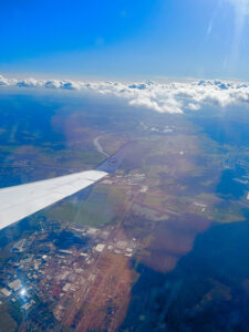 Prvi let je bil iz Ljubljane do Frankfurta. Let je bil miren, letalo pa je bilo manjše, kar je bilo prav super. Sam let je trajal približno uro in pol.