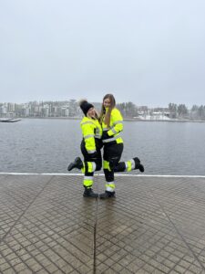 Prejšnji teden sva z Aljo bili pre srečni saj sva se zjutraj prebudili ob pogledu na sneg. V Sloveniji skoraj nikoli nimamo tako zgodaj snega, zato sva bili zelo navdušeni. Hitro sva se oblekli v zimske bunde in si seveda nisva pozabili na kapo. Kmalu sva se odpravili v šolo, Alja kjub snegu kar s kolesom, jaz pa sem šla peš. Tam naju je pričakala sošolka Aminna in nama rekla če bi si z njo šli ogledati največje jezero v mestu. Bilo je čudovito, kljub temu da je snežilo šele prvi dan, so Finci že začeli okraševati. Aminna pravi, da se pogosto zgodi, da so božični okrasi postavljeni kar do meseca maja. Tukaj to ni nič čudnega, saj se je zgodilo, da je tudi sneg bil do junija. Ko smo si ogledale jezero smo šle do gimnazije kjer pa sta čakala še dva dijaka. Dobili smo nalogo da naložimo na tovornjak določen material in ga odpeljemo nazaj v šolo.