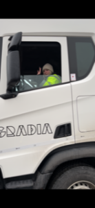 Before we started driving  we had to check if everything looked normal, and the driver have to take alcohol test. If the driver doesn´t do that, the truck won´t turn on. When you are driving you have to use only right leg and you have to look at the mirrors a lot, so you can be sure that the trailer is straight. Driving around was easy, it was harder when had to reverse the truck. It was really nice experience and I am very happy that I got the opportunity to try it. I am very proud of myself, because I drove bigger truck than we have in our country.